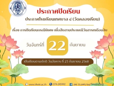 ประกาศปิดเรียน 1 วัน วันพุธที่ 29 มกราคม 2568 เนื่องในวันตรุษจีน